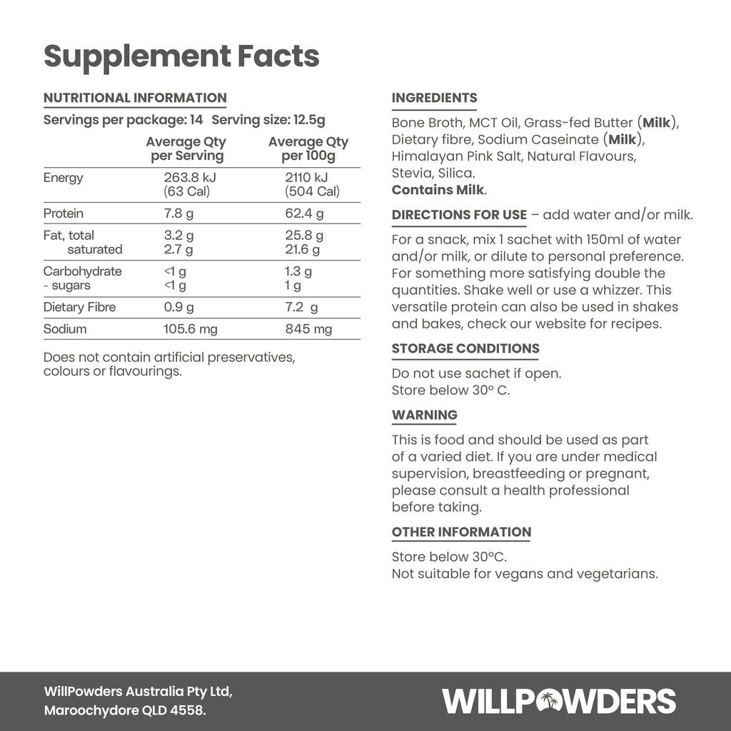 • The only protein powder on the market to contain bone broth and MCT keto creamer