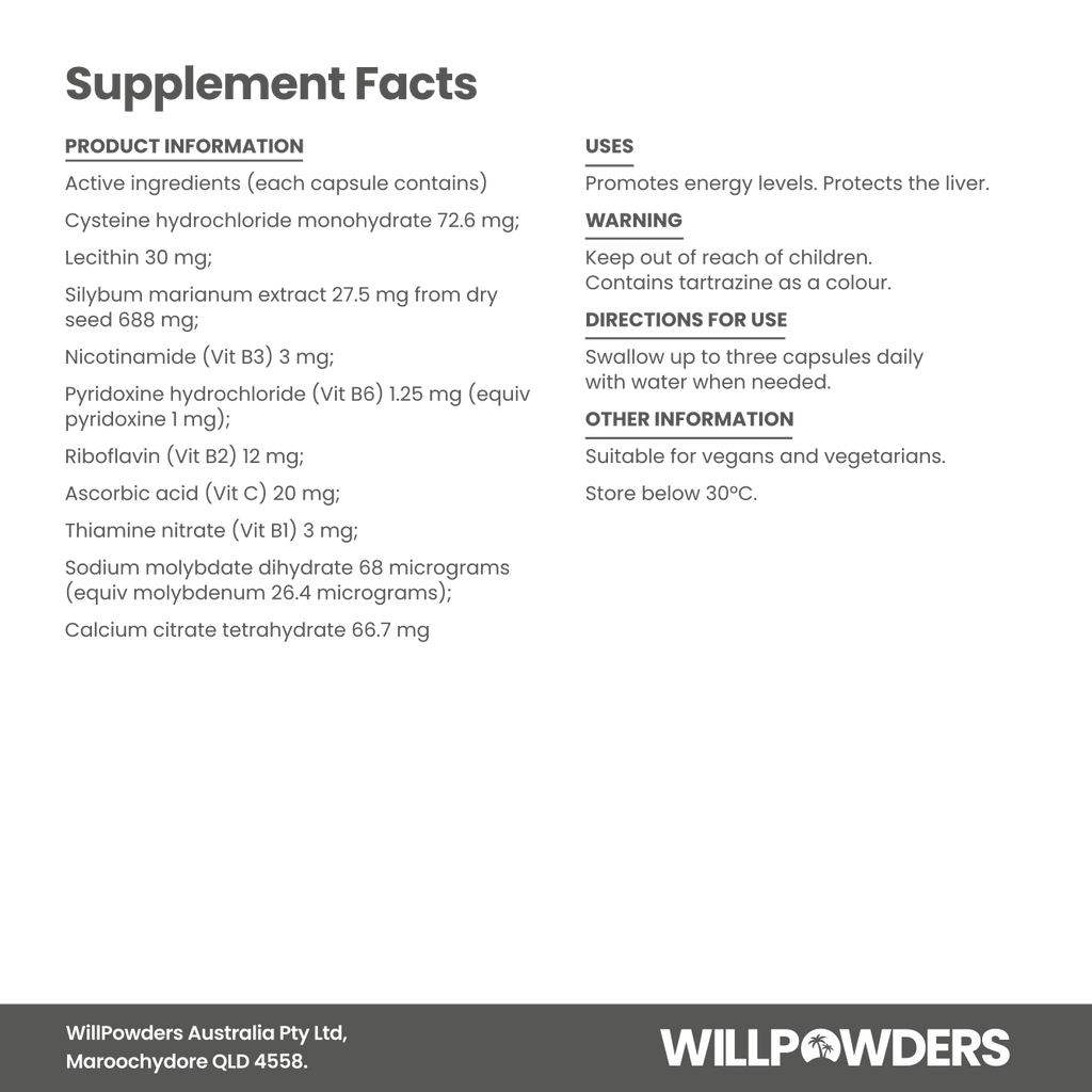 Packed with ultimate liver supporting ingredients. Milk Thistle Extract acts as your liver's personal bodyguard, traditionally used in Western herbal medicine to support healthy liver function. And Cysteine HCl Monohydrate, a readily absorbed form of Calcium to boost your general health and wellbeing.